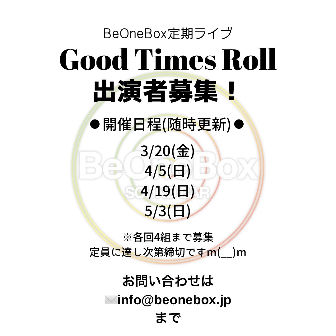 BeOneBoxでは定期ライブ「Good Times Roll」の出演者を募集しています。