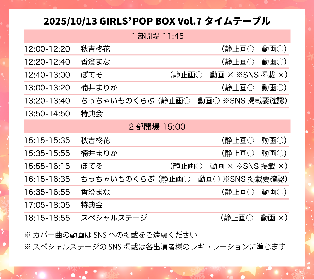※スペシャルステージ(2部物販タイム終了後 18:55終了予定)