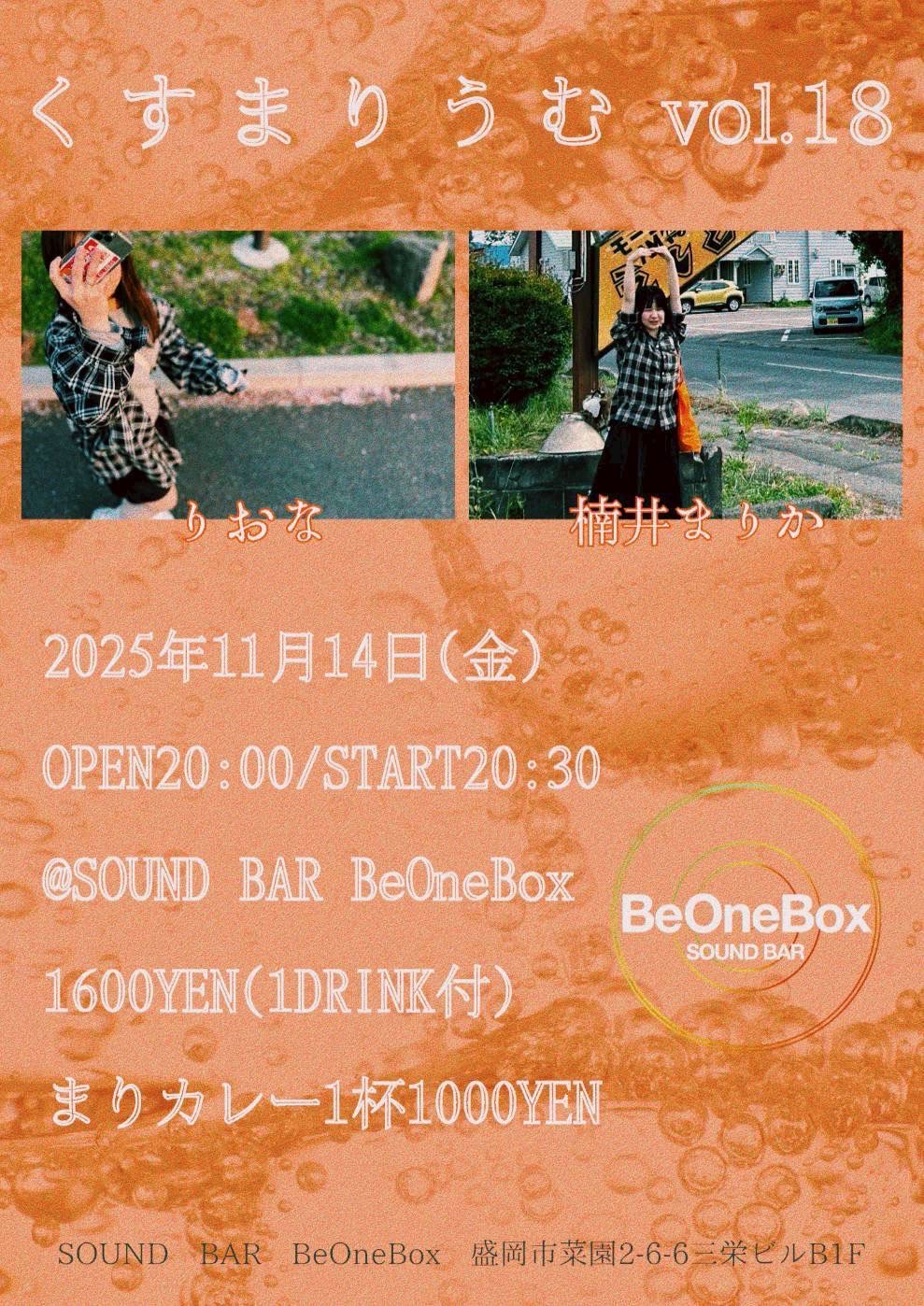 くすまりうむ vol.18 Posted on 2025.09.26 2025年11月14日(金) Open 20:00 / Start 20:30Charge 1,600yen(1drink付) act:りおな / 楠井まりか