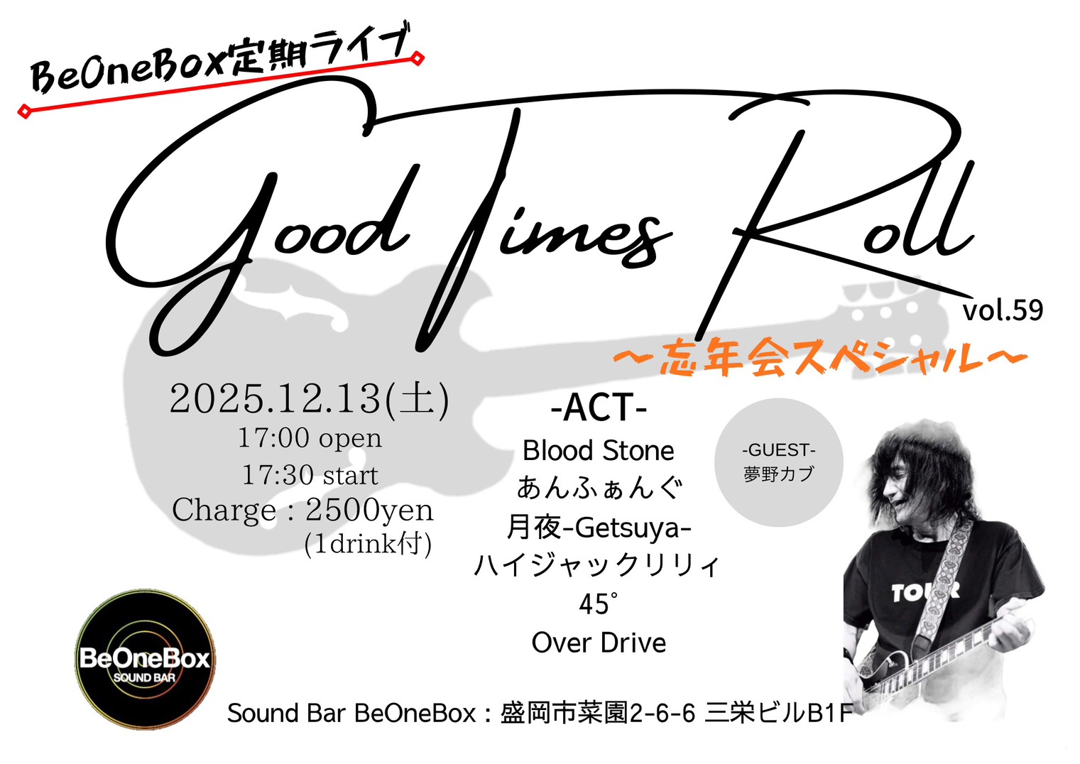 Charge 2,500yen(1drink付)