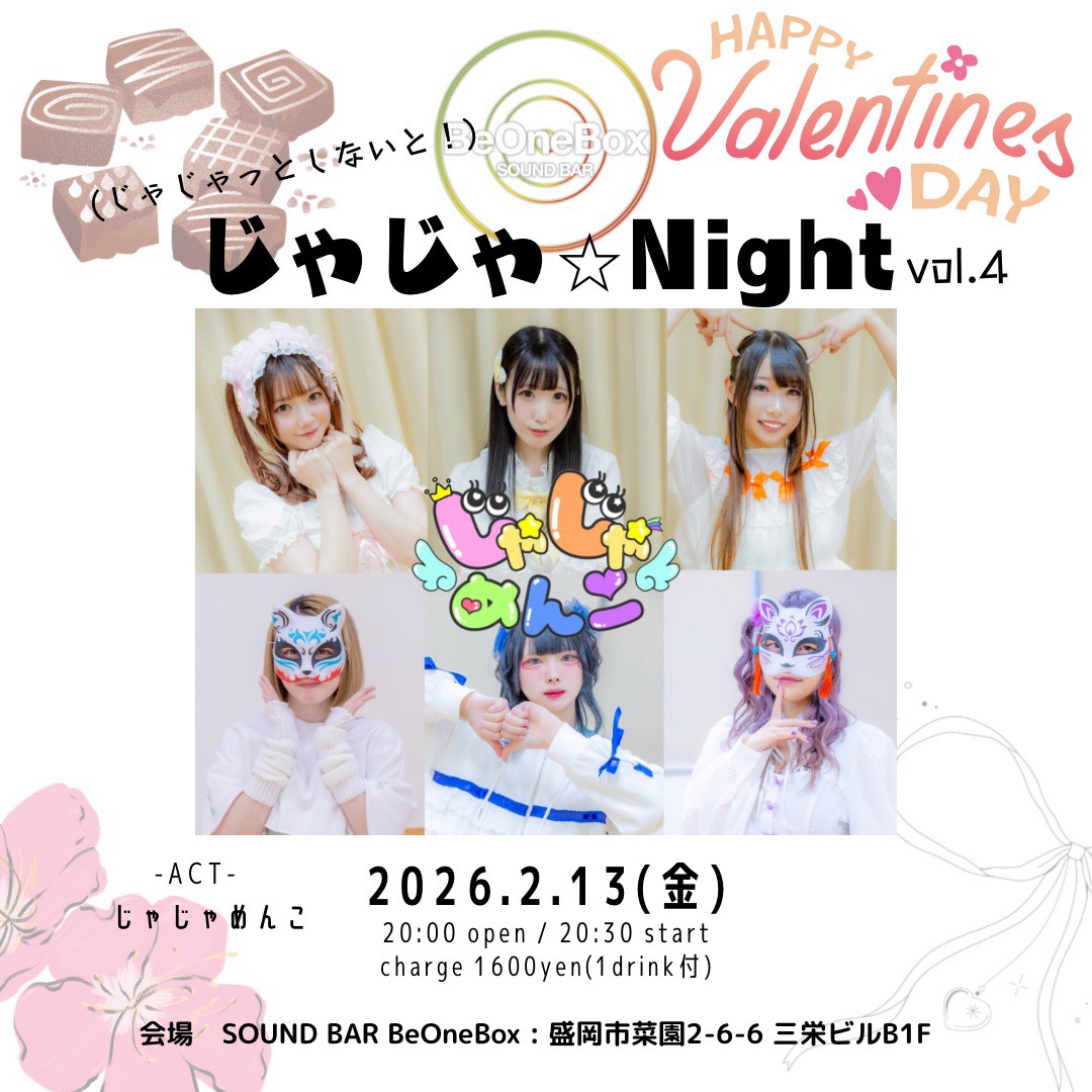じゃじゃ☆Night vol.4 Posted on 2025.12.21 2026年2月13日(金) Open 20:00 / Start 20:30Charge 1,600yen(1drink付) act:じゃじゃめんこ