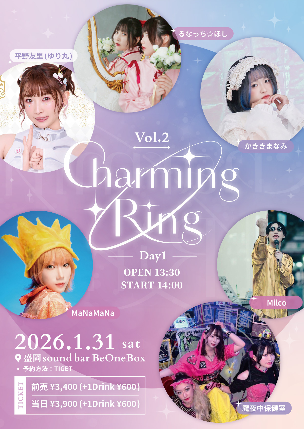 Ticket:前売¥3,400(+1Drink¥600) / 当日¥3,900(+1Drink¥600)