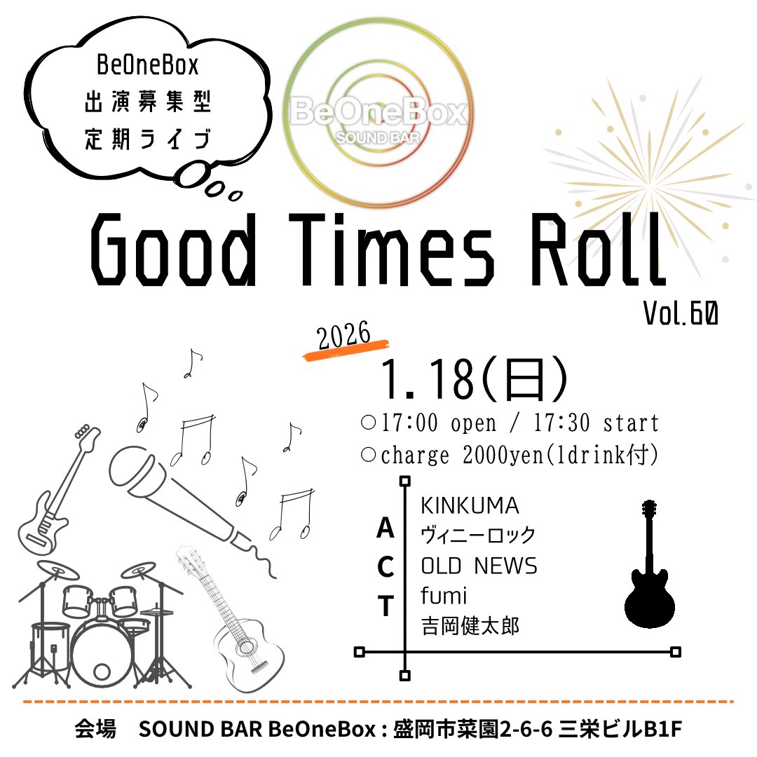 Good Times Roll vol.60 Posted on 2025.12.24 2026年1月18日(日) Open 17:00 Start 17:30Charge 2,000yen(1drink付) act:KINKUMA / ヴィニーロック / OLD NEWS / fumi / 吉岡健太郎