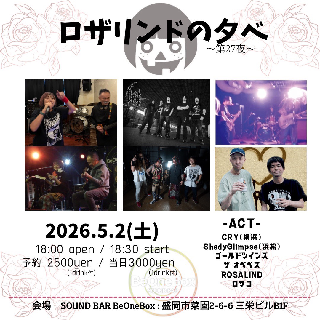 act: CRY(横浜) / ShadyGlimps(浜松) / ゴールドツインズ / ザ・オベベズ / ROSALIND / ロザコ