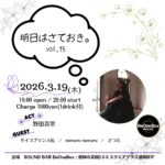 2026年3月13日(金) Open 19:30 Start 20:00Charge 1,600yen(1drink付) act:佐々木勇者guest:ごんたく / ずず […]